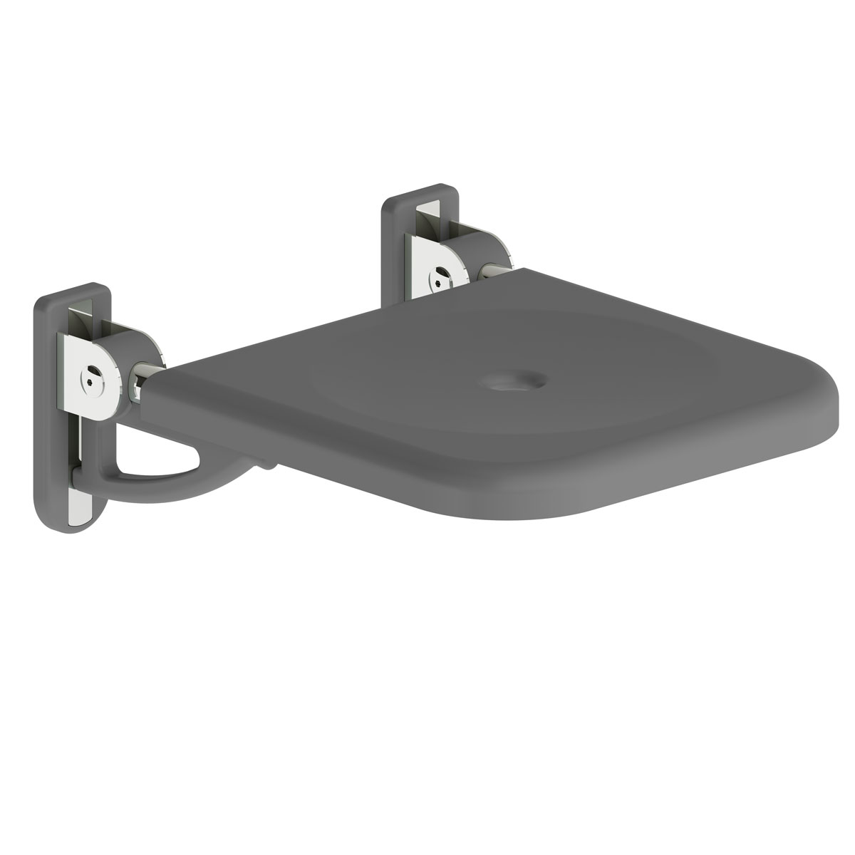 Der graue Duschklappsitz Etac ConceptPro zur festen Wandmontage ist ein bis 200 kg hochbelastbarer Duschsitz aus einem hochwertigen Edelstahlgestell und glasfaserverstärkten Kunststoff-Wandflaschen aus Polyamid, mit einer hautfreundlichen Sitzfläche aus Polypropylen. Seine verchromten Kunststoff-Abdeckungen sorgen dafür, dass die Befestigungsschrauben nicht sichtbar sind.