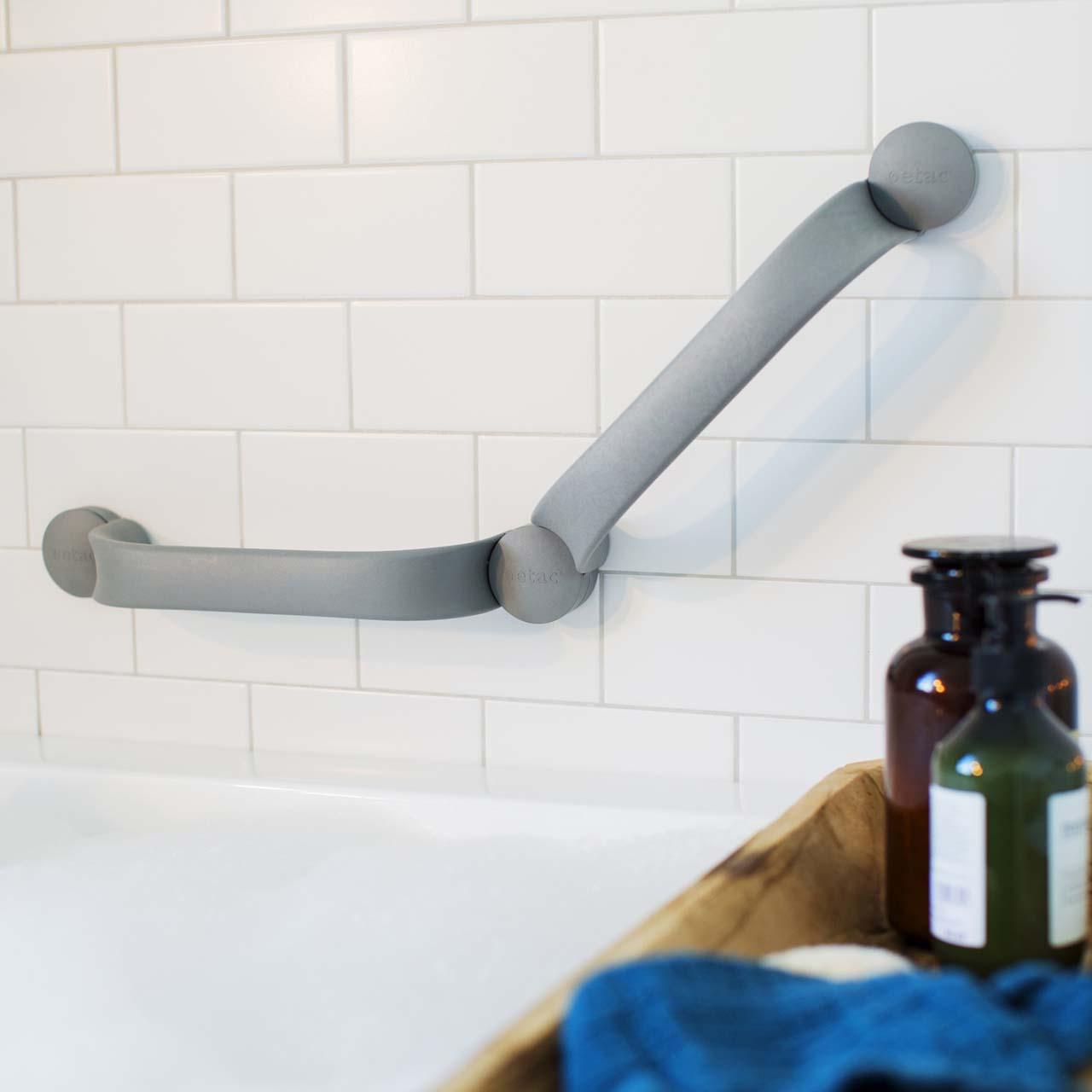 Das modulare System der Etac Flex Haltegriffe zum Kleben oder Bohren lässt sich einfach in der Länge und der Form zusammensetzen, die zu Ihrem Badezimmer passt.