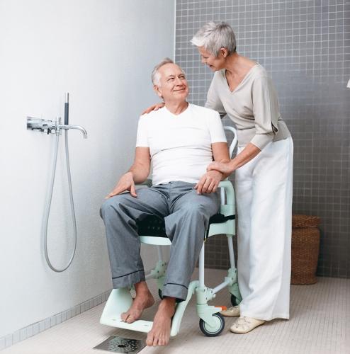 - Dusch- und Toilettenrollstuhl Etac Clean mit Sitzhöhe 55 cm