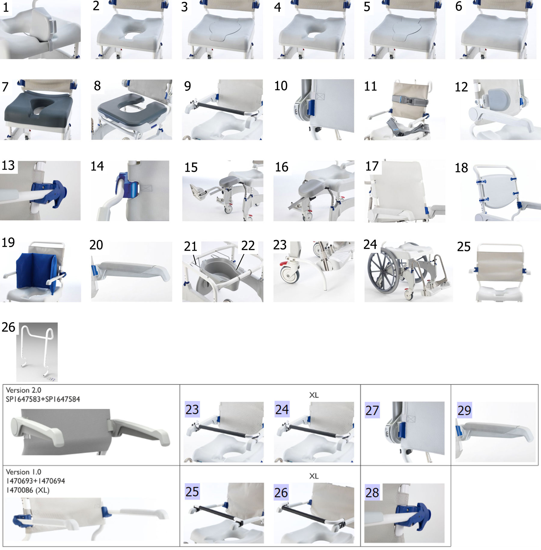 Sie möchten einen höhenverstellbaren Dusch- und Toilettenrollstuhl Aquatec Ocean Ergo kaufen oder das vorhandene Badhilfsmittel um Original Zubehörteile ergänzen, dann finden Sie hier einen Überblick über alle Zubehörteile für den höhenverstellbaren Toiletten- und Duschrollstuhl Aquaetc Ocean Ergo.