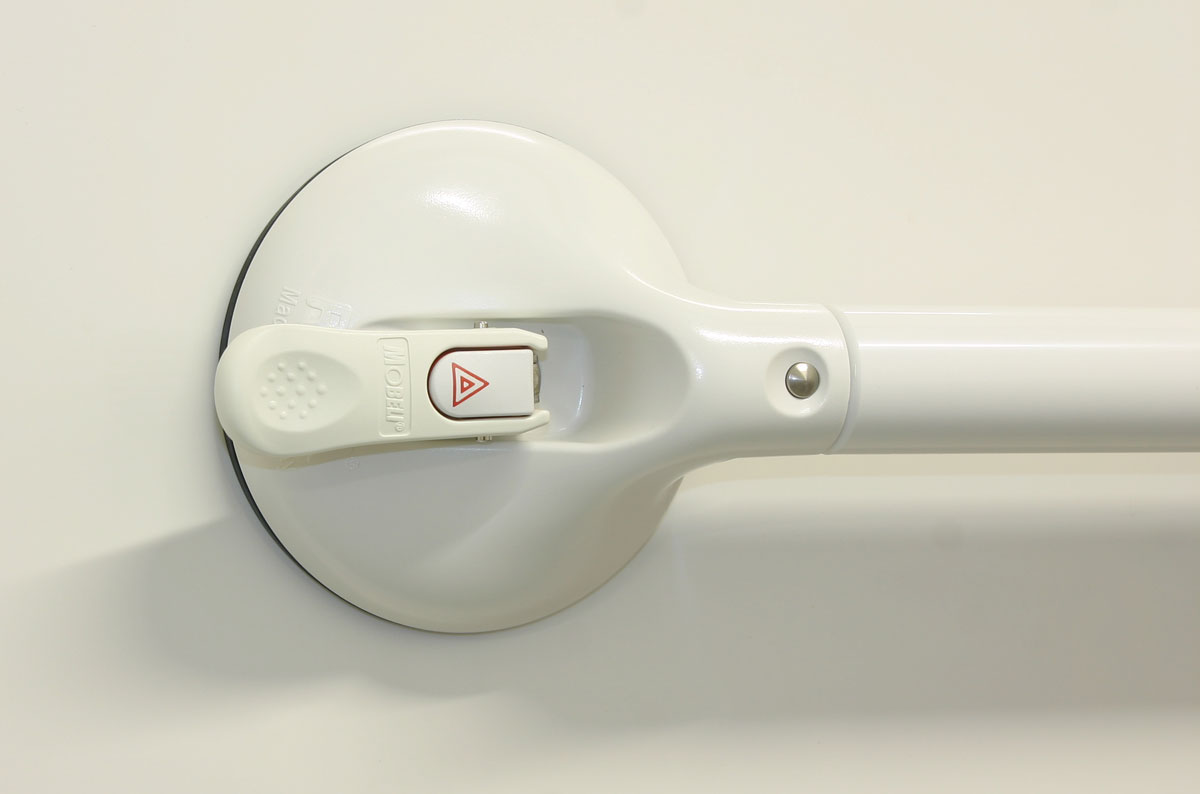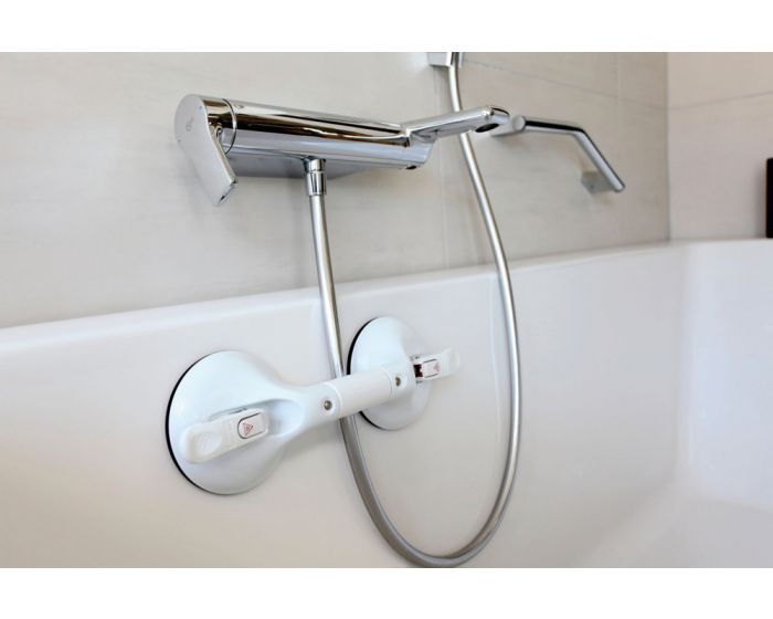 Ein mobiler 1-Hand-Haltegriff von Roth mobeli bietet sicheres Festhalten ohne Bohren und Schrauben bis zu einer Belastbarkeit von 105 kg Benutzergewicht. Als mobile Saughaltegriffe mit Sicherheitsanzeige sind die mobeli Roth 1-Handgriffe mit großen Saugnäpfen flexibel einsetzbare Bad-Haltegriffe in der Dusche, bei der Wanne oder neben der Toilette und so eine praktische Hilfe im Badezimmer zum sicheren Aufstehen, Stehen und Hinsetzen mit einer Greiflänge von 110 mm. Mobeli 1-Hand-Haltegriffe von Roth, geeignet hier für eine Hand, die sich nach Operationen und im Alltag von körperlich eingeschränkten oder älteren Menschen seit vielen Jahren bestens bewährt haben und immer weiterentwickelt wurden. Sicherheitsanzeige Wenn Sie den bewährten Bad-Haltegriff mit Saugnäpfen für eine Hand bei uns im Online Sanitätshaus kaufen, entscheiden Sie sich für einen hochbelastbaren, sicheren Haltegriff mit Saugtellern, der Ihnen optisch anzeigt, ob der mobile Roth Haltegriff sicher befestigt ist. Um Ihre Sicherheit beim Baden oder Duschen, aber auch als Haltegriff bei Gangunsicherheiten zu gewährleisten, hat Roth seine Saughaltegriffe mit einer erkennbaren Sicherheitsanzeige ausgestattet: Roth mobeli Saughaltegriffe von Roth zum sicheren Greifen für beide Hände Benötigen Sie den mobilen Roth Haltegriff zum sicheren Festhalten mit 2 Händen oder wird als Saughaltegriff in der Dusche oder Badewanne vertikal eingesetzt, bieten wir Ihnen in unserem Online Sanitaetshaus-24.de längere, aber auch höher belastbare mobile Roth Haltegriffe an: Der Roth mobiler 1-Handgriff mit Sicherheitsanzeige ist mit dem TÜV-Siegel ausgezeichnet. Von TÜV Süd nach der neuen Norm ISO17966:2016 auf das maximale Benutzergewicht bis 105 kg geprüft. Roth mobeli 1-Handgriff mit Sicherheitsanzeige