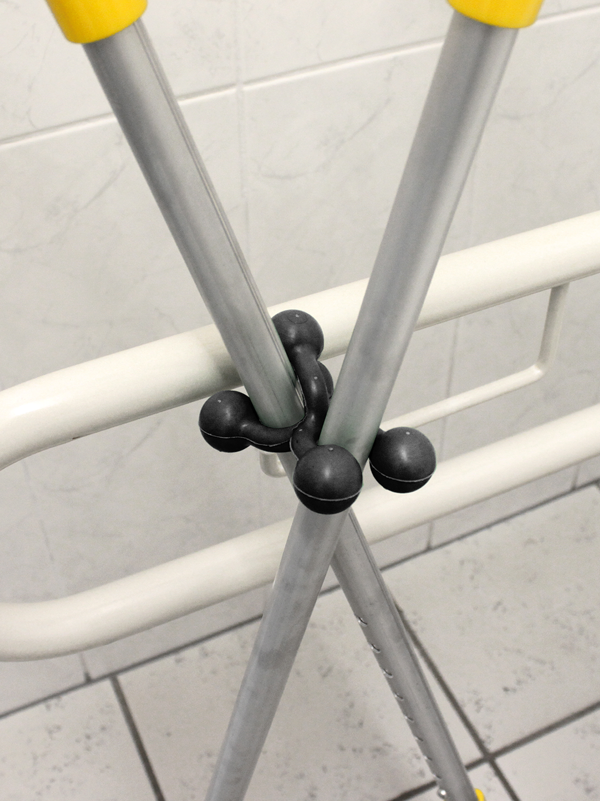 Der Universalhalter Gnubbel zur Fixierung von Gehstöcken und anderer medizinischer Hilfsmittel besteht aus abriebfesten Gummi mit rutschhemmender Oberfläche. Das Material ist frei von Weichmachern und Latex, lebensmittelecht und leicht zu desinfizieren. Der praktische und leicht anwendbare Universalhalter lässt sich auch im Haushalt vielseitig verwenden.