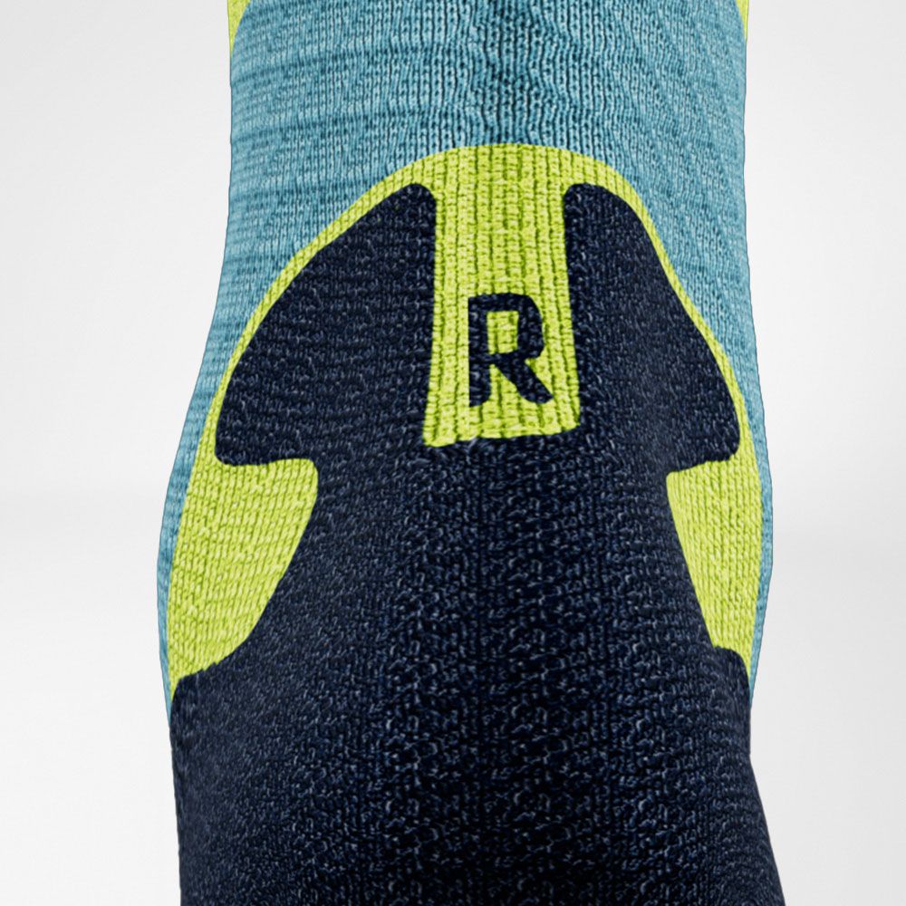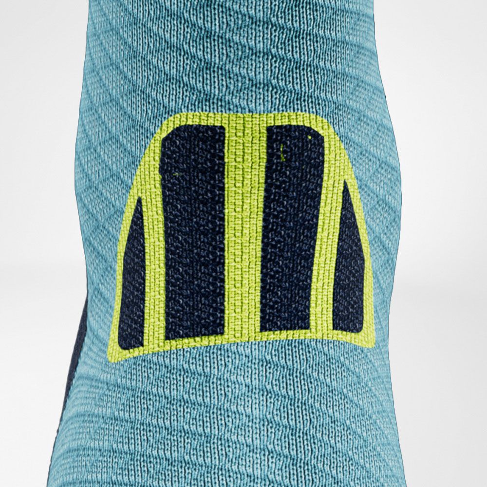 Atmungsaktive Bauerfeind Men Trail Run Compression Socks in modernen sportlichen Farben sind paarweise erhältlich und mit professionellen Trail-Läufern für das Laufen im Gelände entwickelt.