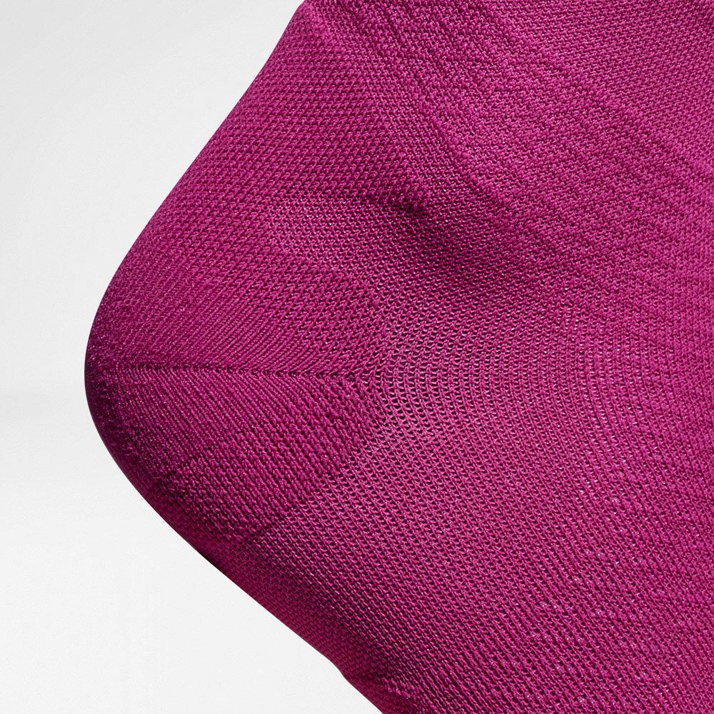 Während Sie laufen, verringern einzigartige Kompressionszonen Muskelvibrationen an der Wade und regen die Durchblutung an. So ermüden die Muskeln beim Laufen langsamer und es bleiben Ihnen mehr freie Energiereserven. Gezielte Komfortzonen bieten Schutz vor Überlastung, heben das Fußgewölbe leicht an und unterstützen durch leichten Druck das Sprunggelenk. Mit Bauerfeind Women Run Ultralight Compressions Socks schonen Sie die Fußsohlen und reduzieren die Druckbelastung auf die Fersen beim Aufsetzen der Füße in Ihren Laufschuhen. Eine extra Aussparung entlastet die Achillessehne und beugt Überreizungen an diesem empfindlichen Bereich vor.