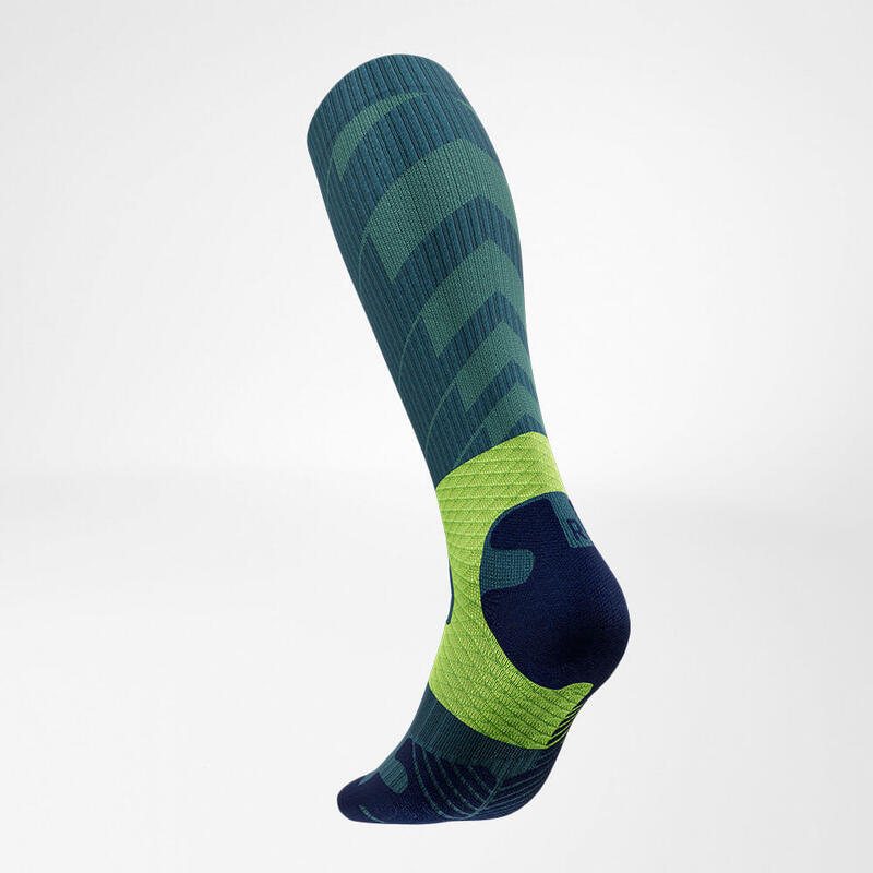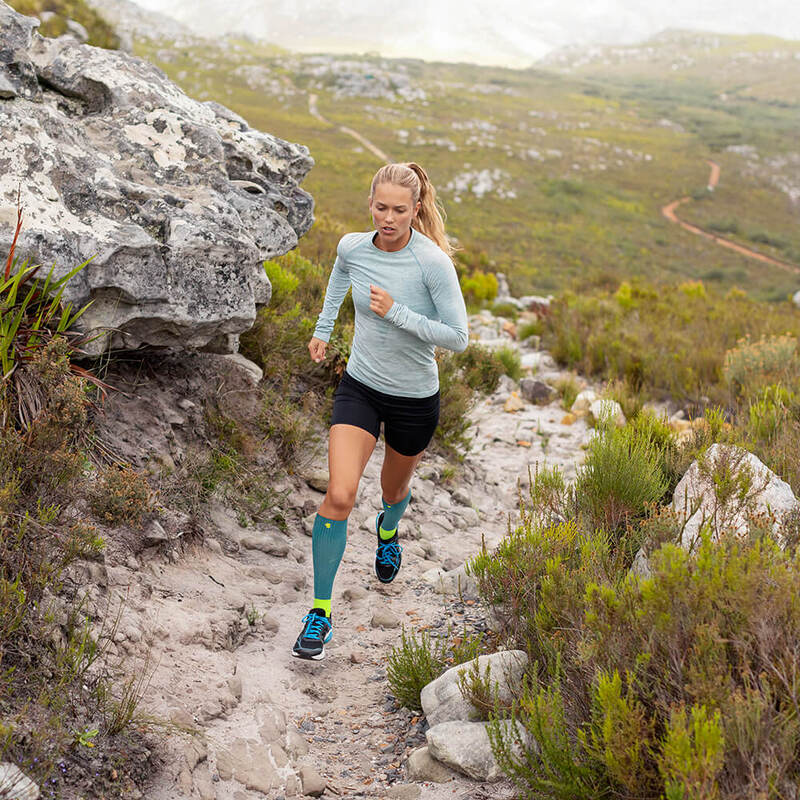 Die zonenspezifische Wadenkompression steigert die Effizienz Ihrer Muskulatur mit besserer Durchblutung. So ermüden Ihre Waden langsamer und bleiben auf langen Trail Strecken leistungsfähiger.