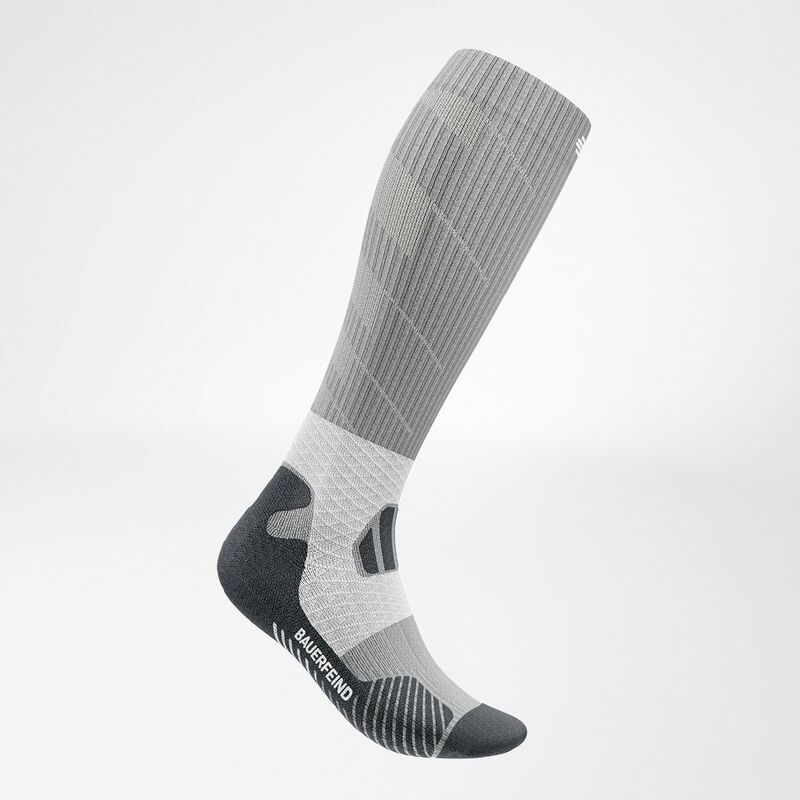 Die Bauerfeind Women Trail Run Compression Socks unterstützen sportliche Frauen beim Laufen im Gelände mit spezifischen Kompressions- und Komfortzonen der Outdoor-Sportstrümpfe. Der Hersteller Bauerfeind hat eigens für das anspruchsvolle Trailrunning die Trail Run Compression Socks für Damen in Zusammenarbeit mit professionellen Trail-Läufern entwickelt. So bieten die Bauerfeind Laufstrümpfe mit ihrer verstärkten Kompression im Bereich der Sprunggelenke erhöhte Stabilität und Sie sind besonders auf unebenem Gelände abseits normaler Wege mit sicherem und rundem Tritt unterwegs.