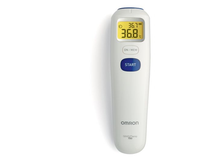 Dank der berührungslosen Messung können Sie mit dem OMRON Fieberthermometer Gentle Temp 720 schnell und sicher die Körpertemperatur messen und Fieber ablesen. Besonders bei Babys und Kleinkindern ist das einfache kontaktlose Messen der Temperatur mit dem 3-in-1-Infrarot-Stirn-Thermometer Gentle Temp 720 eine Erleichterung. Die Temperatur wird an der Stirn gemessen. Auf dem großen beleuchteten Display lassen sich die Werte leicht ablesen. Durch 25 Speicherplätze können Temperaturschwankungen im Zeitverlauf verfolgt und Trends beobachtet werden und mit der Stummschaltfunktion wird der erholsame Schlaf der erkrankten Person nicht durch Gerätetöne gestört.