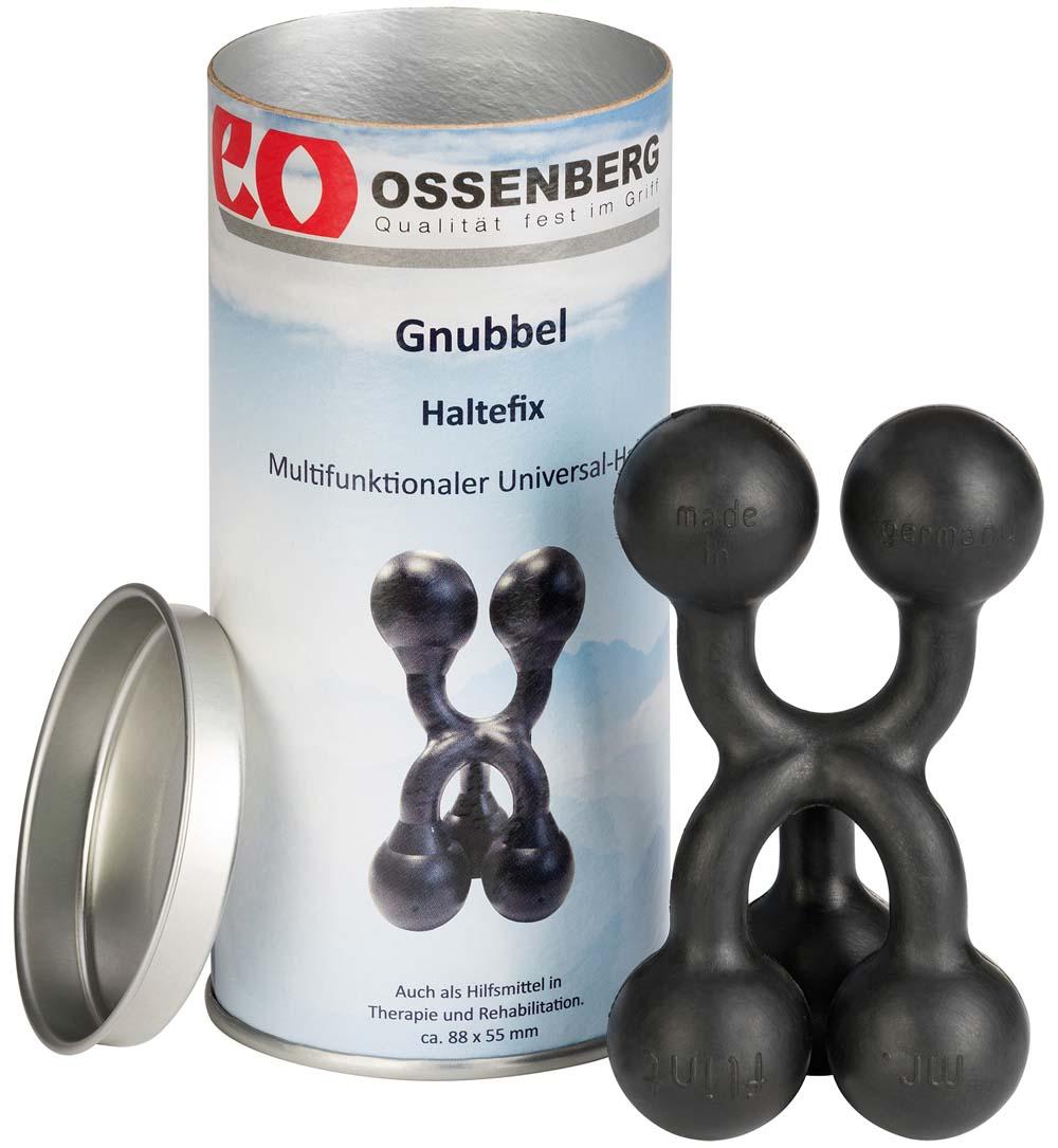 Der Universalhalter Gnubbel zur Fixierung von Gehstöcken und anderer medizinischer Hilfsmittel besteht aus abriebfesten Gummi mit rutschhemmender Oberfläche. Das Material ist frei von Weichmachern und Latex, lebensmittelecht und leicht zu desinfizieren. Der praktische und leicht anwendbare Universalhalter lässt sich auch im Haushalt vielseitig verwenden.