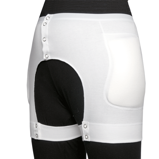 Der Suprima Hüftprotektor-Slip mit integrierten Protektoren ist flexibel tragbar und bietet Patienten einen effektiven Schutz vor Oberschenkelhalsbrüchen und Verletzungen im Falle eines Sturzes, ohne unter der Kleidung aufzutragen. Er erleichtert dem Pflegenden das Anlegen der Hüftprotektoren und ist ein wirkungsvoller Schutz bei Personen, die Inkontinenzmittel nutzen oder sehr immobil sind.