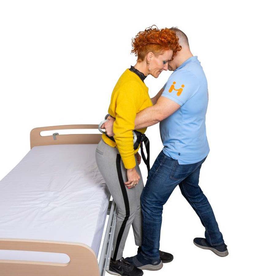 Der master care Transfer- und Haltegurt Master Belt und unterstützt das Aufstehen, Hinsetzen oder Umsetzen eines Pflegebedürftigen. Ein Haltegürtel ermöglicht die unterstützende, würdevolle Mobilisierung des Patienten, da die Pflegekraft den Patienten nicht direkt anfasst und ein Untergreifen an den Armen des Pflegebedürftigen somit vermieden wird. Dazu wird der Haltegürtel dem Pflegebedürftigen und/oder der Pflegekraft um die Taille gelegt und über die Schnalle verschlossen. Der Haltegürtel Master Belt hat mehrere gut greifbare Griffe, mit denen die Pflegekraft den Bewegungsablauf steuern und unsichere Personen sicher unterstützen kann. Entlasten Sie den körperlichen Einsatz Ihrer Pflegekräfte mit dem Einsatz von Transferhilfen.