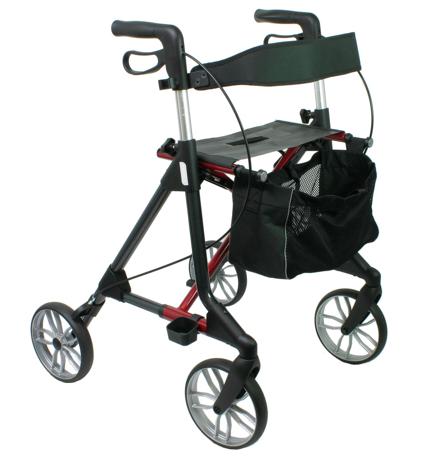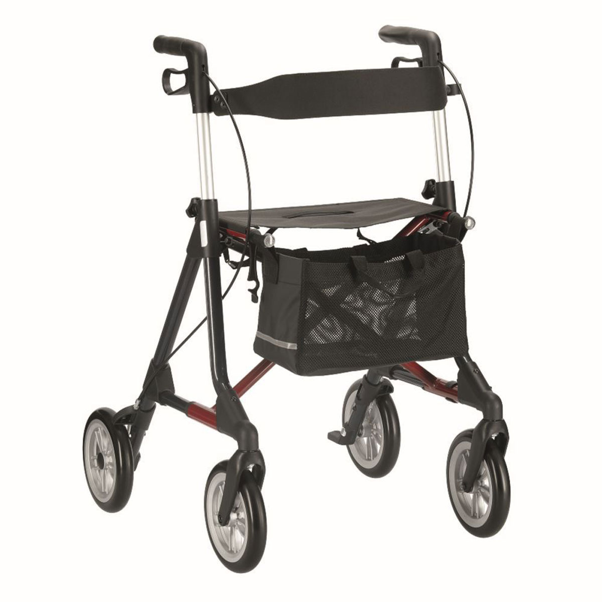 - In den Rahmenfarben champagner oder anthrazit mit dunkelroter Kreuzstrebe wird die mobile Gehhilfe ein praktischer Wegbegleiter im schlichten eleganten Design sein.
