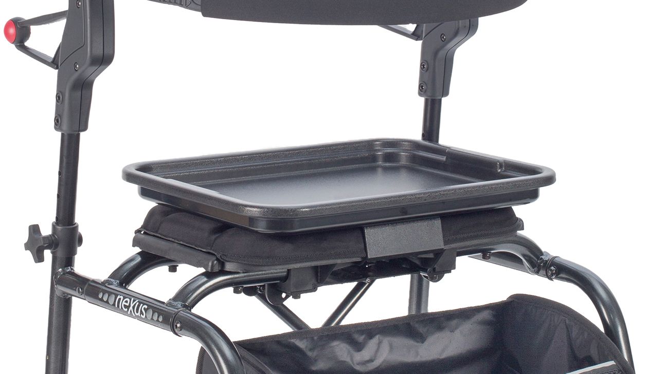 Im Gegensatz zu vielen anderen längst gefalteten Gehhilfen verfügt der Nexus über eine feste, gepolsterte Sitzfläche, die sich beim Zusammenklappen des Rollators mittig faltet. Die große, bequeme, gepolsterte Sitzfläche sorgt dafür, dass Sie unterwegs mit sicherem Gefühl immer eine Möglichkeit zum Ausruhen haben.