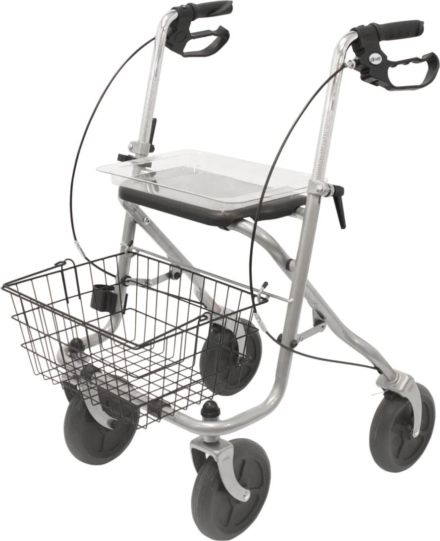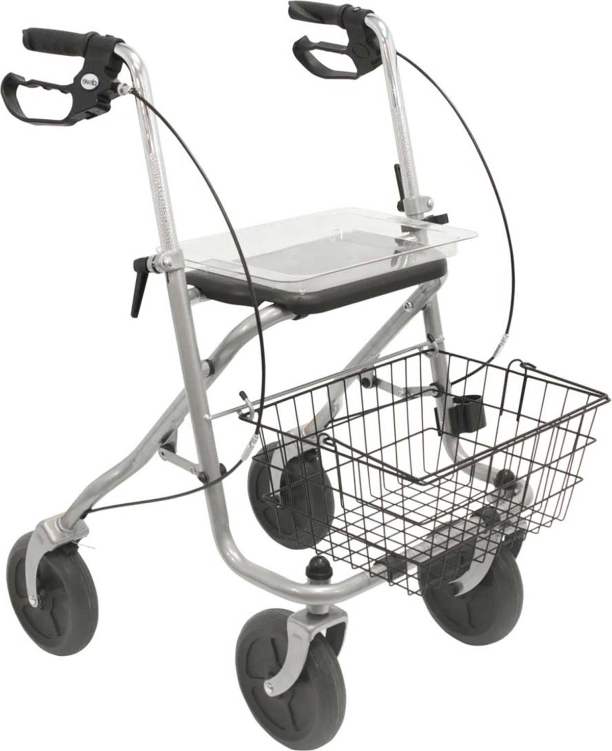• Der Rollator Migo 2G von Drive Medical ist serienmäßig mit Korb, Tablett und Stockhalter ausgestattet und wird montiert geliefert.