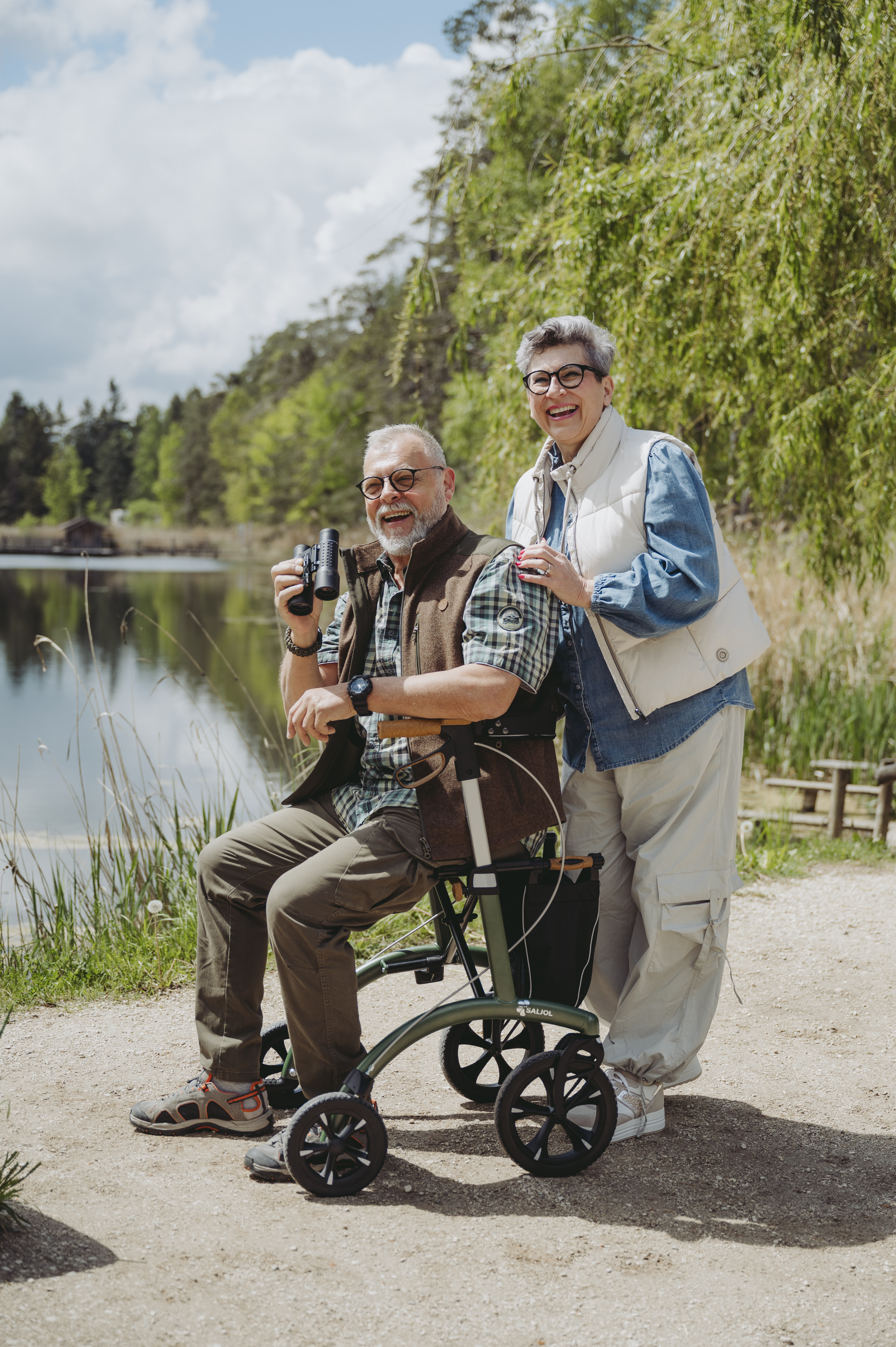 Saljol meint zu seinem Outdoor Rollator: Wäre der Allround Rollator aus Aluminium ein Auto geworden, wäre er ein SUV … denn in der Stadt punktet er als leichter Rollator damit, wendig und komfortabel zu sein, und auf dem Land, abseits der Gehwege überzeugt er mit seinen Offroad-Fähigkeiten als geländegängiger Outdoor Rollator.