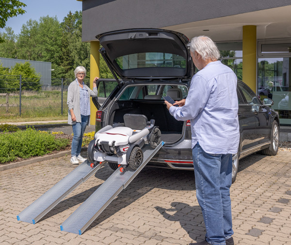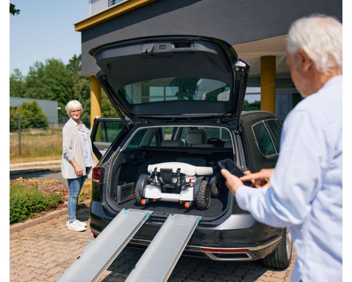 - Per Knopfdruck oder über die praktische App lässt sich der MovingStar 3000 einfach kompakt zusammenfalten. Mit dieser Funktion lässt sich das Elektromobil problemlos in fast jedem Kofferraum verstauen, egal ob zu Hause oder unterwegs