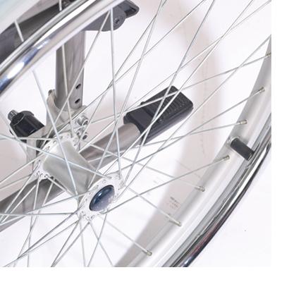 Möchten Sie einen der bewährten faltbaren Rollstühle S-Eco 300 von Bischoff und Bischoff kaufen, treffen Sie bitte vorab die Entscheidung, ob der Faltrollstuhl ausschließlich mit Kniehebelbremse oder auch mit Trommelbremse ausgerüstet sein soll. Ein nachträglicher Anbau ist nicht möglich. Diese Entscheidung ist notwendig, wenn Sie vor Ort mit Gefälle konfrontiert sind. Die standardmäßig angebrachte Feststellbremse ist aus der sitzenden Position erreichbar und dient der Benutzung im Ruhezustand des Rollstuhls.