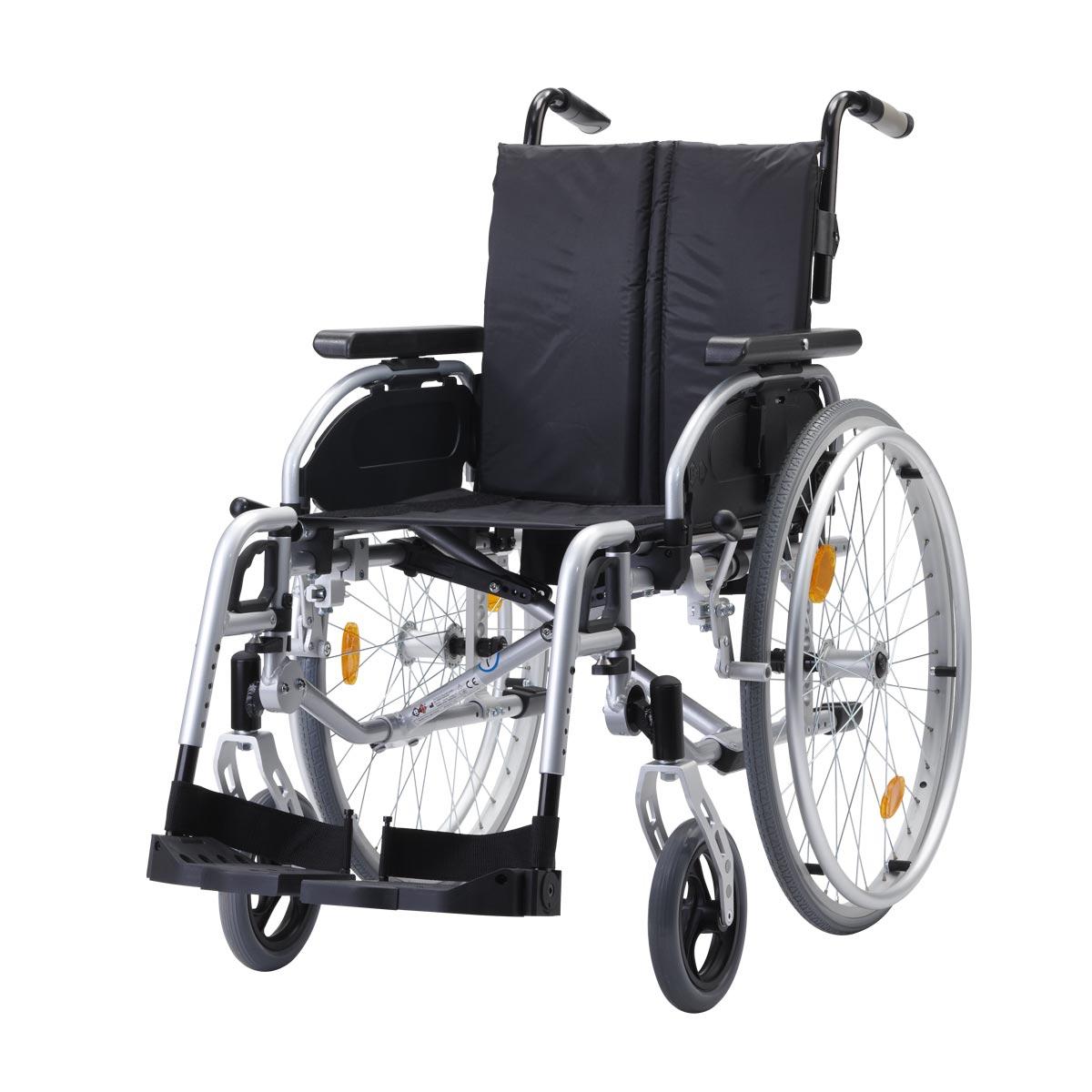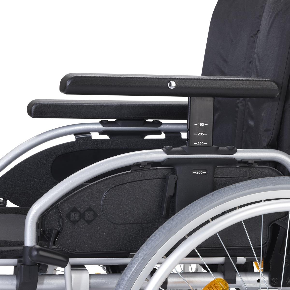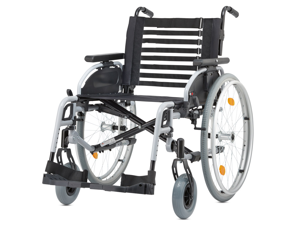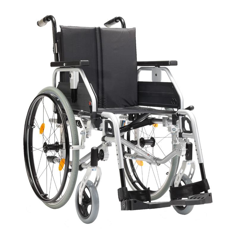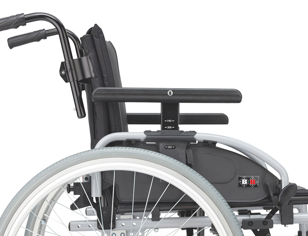 - Serienmäßig höhenverstellbare Schiebegriffe und die optional verfügbare Trommelbremse erleichtern der Begleitperson das Schieben des leichten Rollstuhls dank der richtigen Griffhöhe.