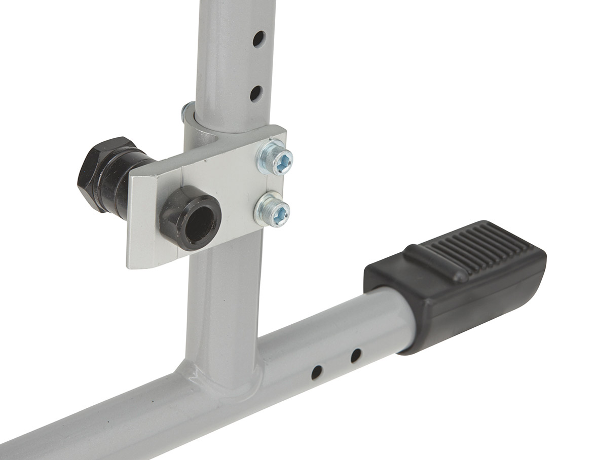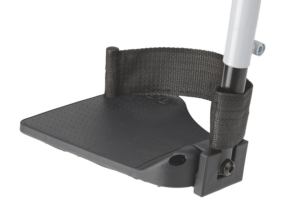- abschwenkbaren und einstellbaren Fußstützen mit Fersenband