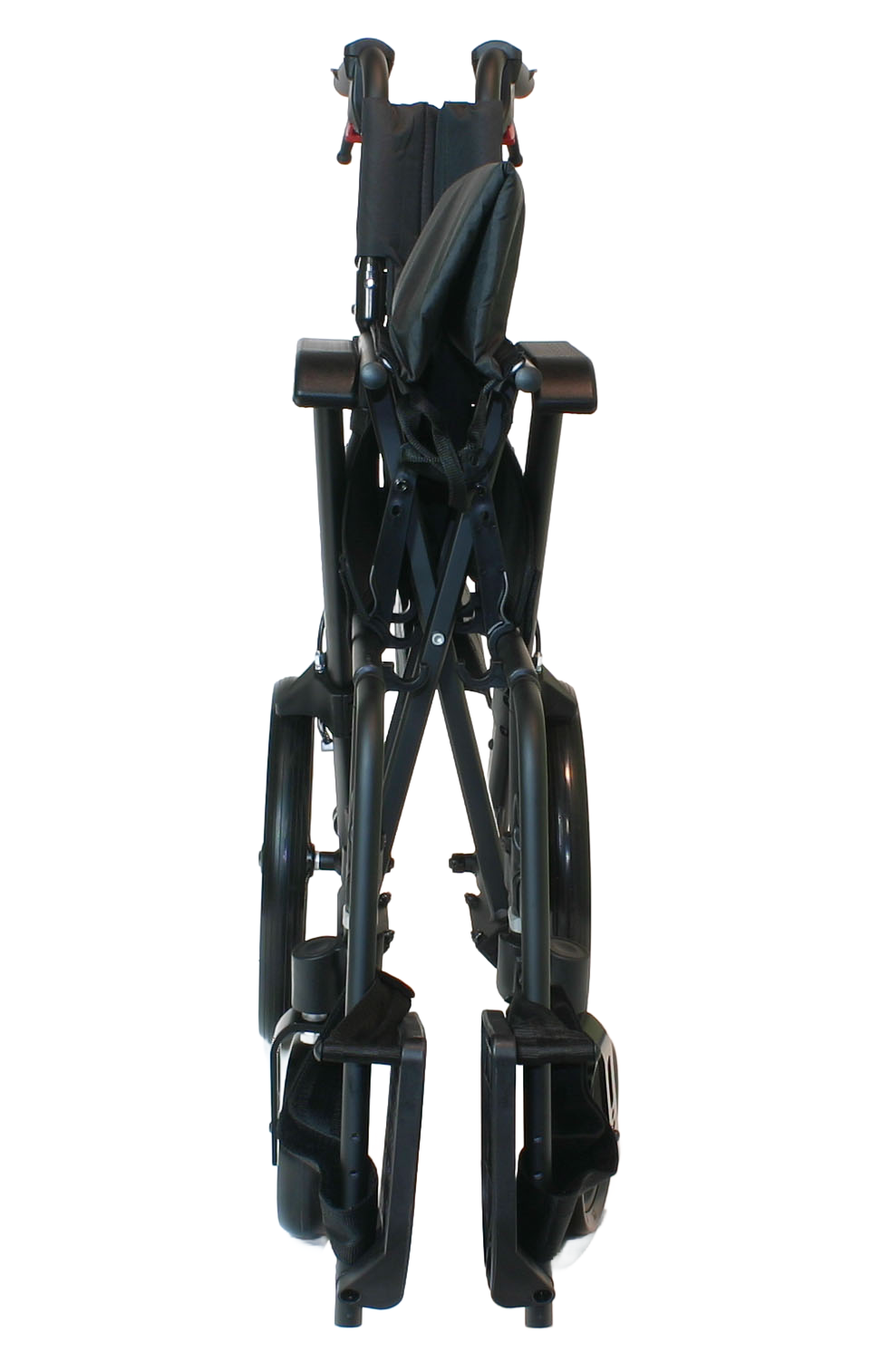 Der Transportrollstuhl ICON 35 LX ist leicht und lässt sich kompakt auf ein Faltmaß von 27,0 x 74,0 x 65,0 cm zusammenklappen und so für den Transport als Rollstuhl einfach verstauen.